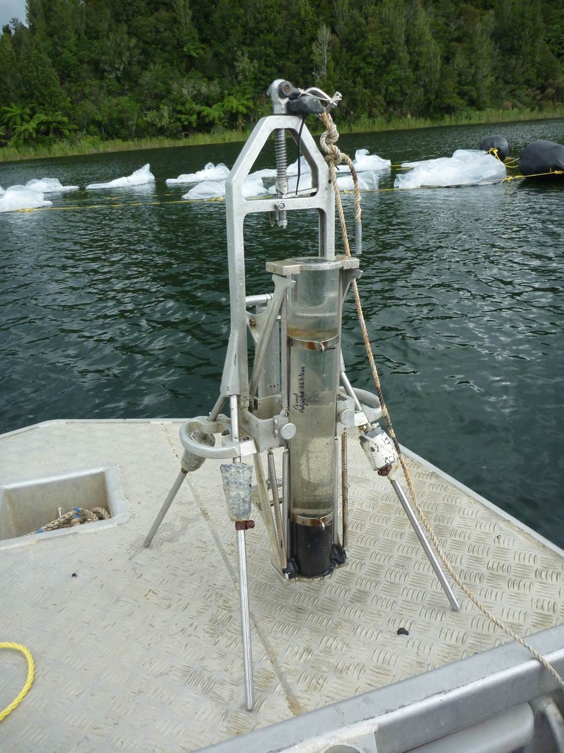 Jenkins corer collection of sediment core from Lake Rotoehu