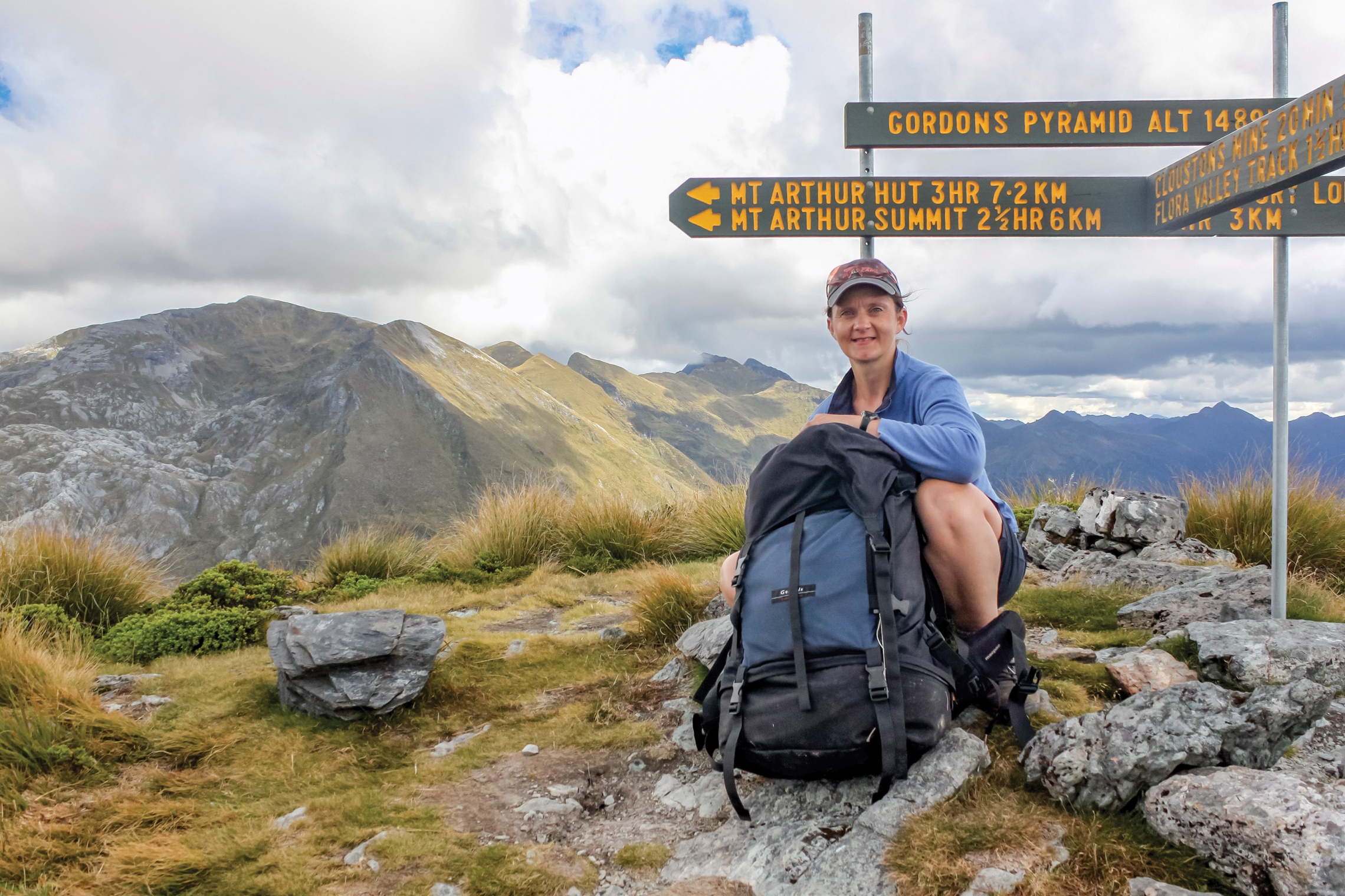 Juliet Milne en route to the summit of Mt Arthur (Wharepapa) as part of the Tableland circuit in Kahurangi National Park.