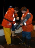 Karl Safi and Mike Elwood deploying the Go-flow bottles. (Photo: Bill Main)