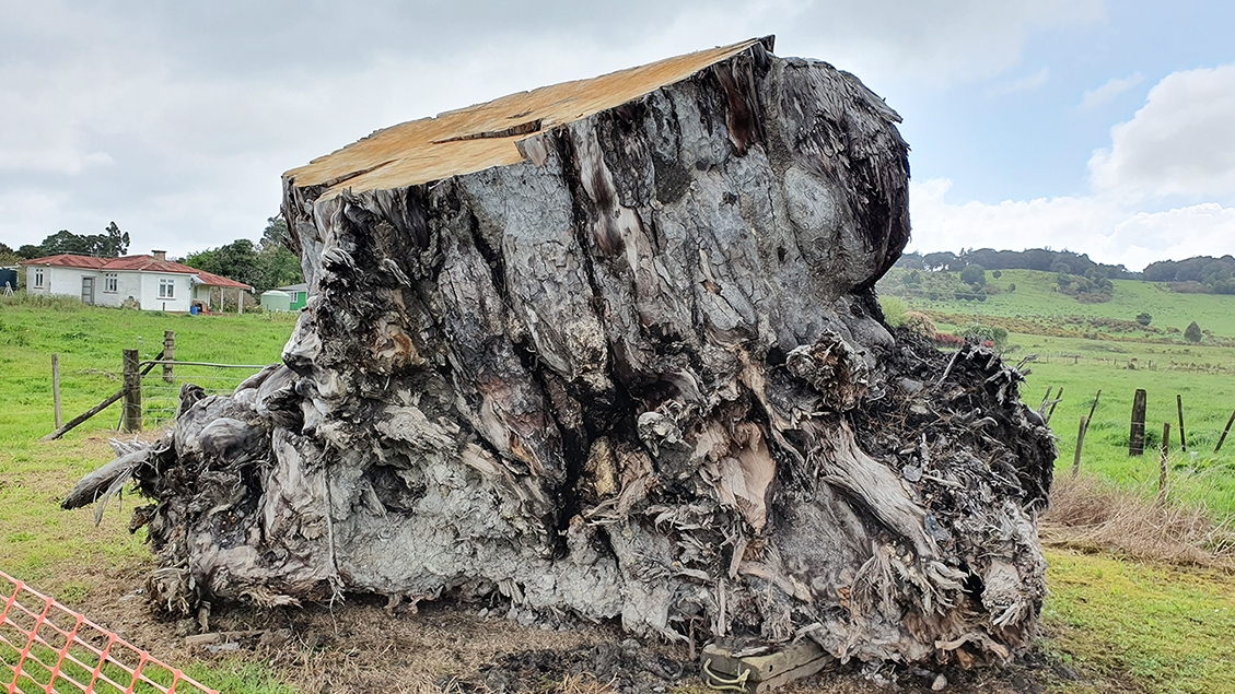 The trunk of an ancient kauri tree from Ngāwhā, Northland.