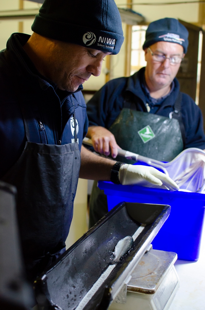 Measuring salmon.