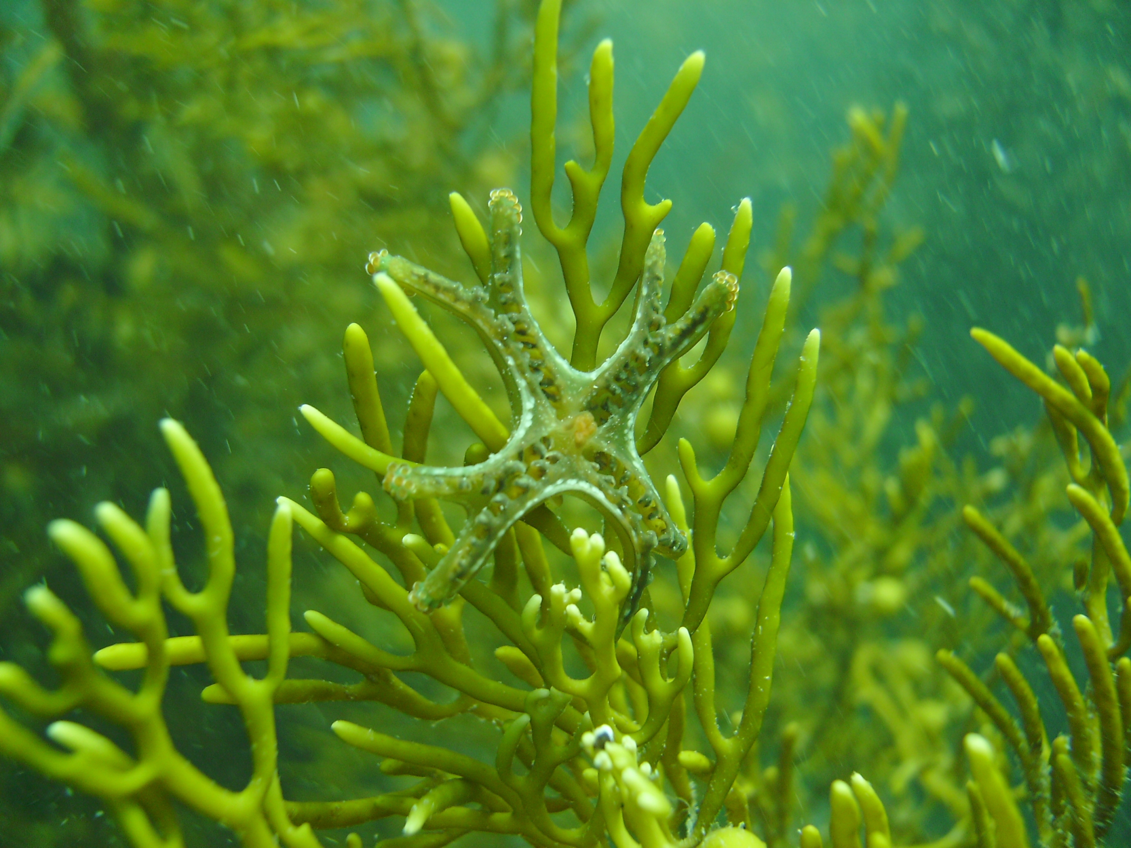 This stauromedusan, or stalked jellyfish, is about the size of a thumbnail. Photographed on brown kelp in the Taputeranga Marine Reserve near Wellington and tentatively identified as Kishinouyea cf. nagatensis (Oka, 1897), a Japanese species. Credit: Sheryl Miller