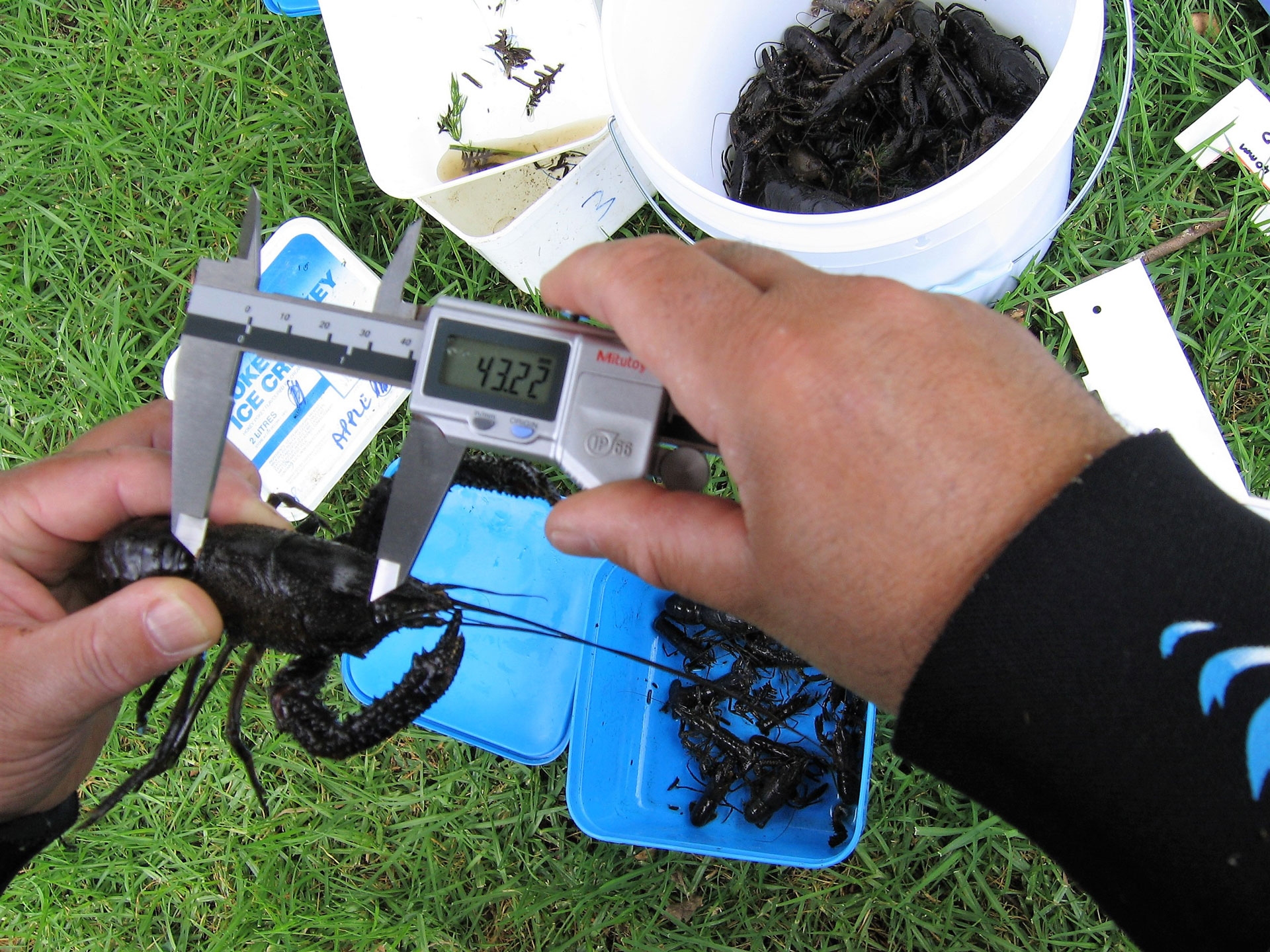 Measuring orbit-carapace length (OCL) in kōura.