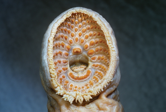 Chestnut Lamprey mouth (Ichthyomyzon castaneus). Mississippi River basin, USA.