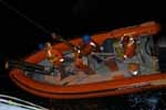 Launching the inflatable with Brian Ward (left), Peter Healey, and Craig Stevens (right) for deployment of the autonomous profilers. (Photo: Bill Main)