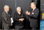 The leader of the National Centre for Coasts & Oceans, Dr Ian Wright, talks with the Minister, and with Dr Barry Carbon, Chief Executive of the Ministry for the Environment, at the launch.
