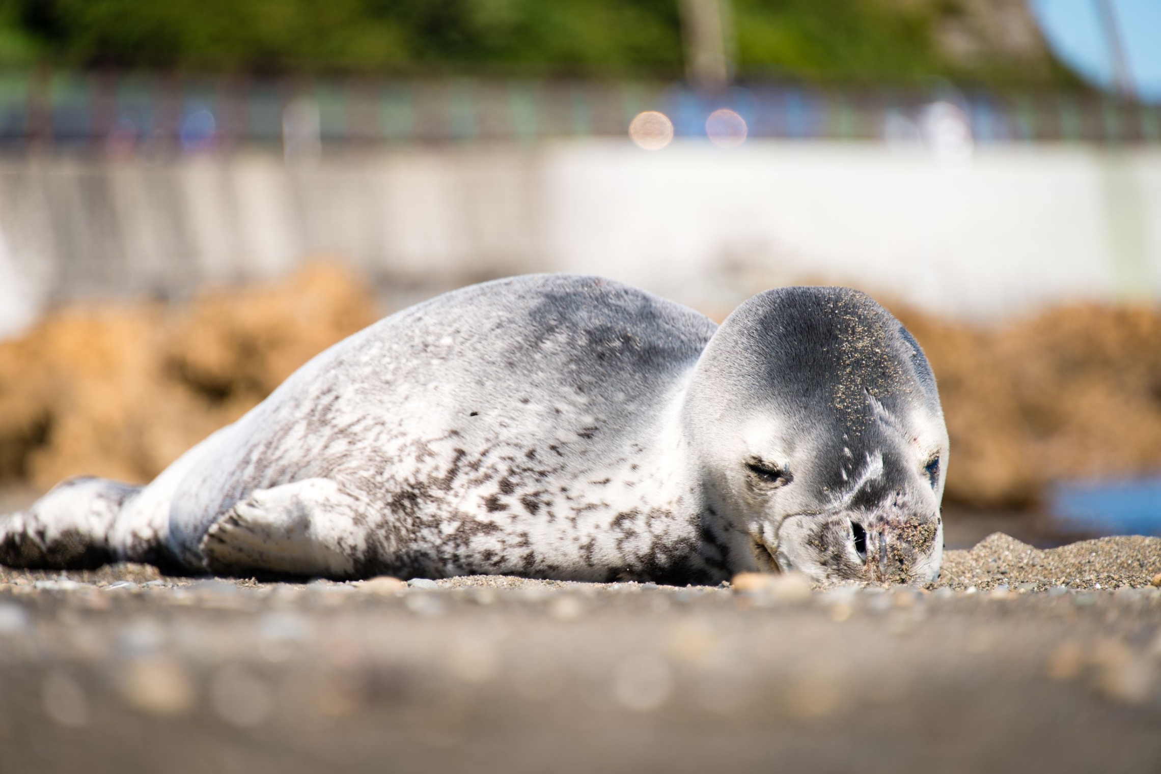 A leopard seal resting at Owhiro Bay, Wellington.