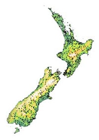 The locations for which NIWA archives current climate data. There are many more sites from which data is available for periods in the past.