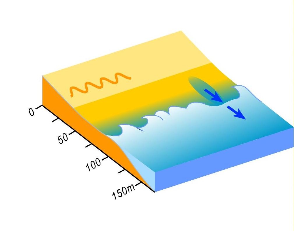Low tide terrace beaches are composed of fine to medium sand and have a moderately steep beach face joined to an attached bar or shallow terrace that is often exposed at low tide.