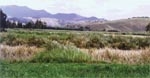 Manchurian wild rice herbicide trial site: haloxyfop (left), control (green), and imazapyr (right).
