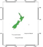 Map showing the locations of Campbell Island, the Antipodes Islands and the Auckland Islands