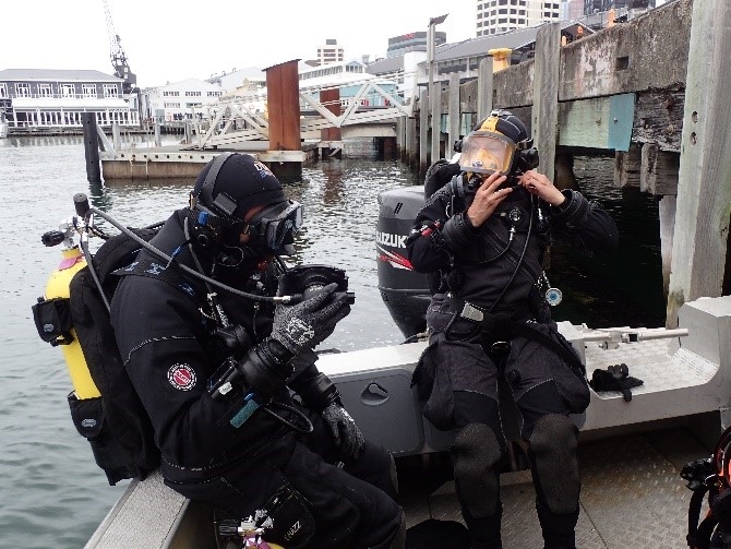 Peter Marriott and Serena Cox prepare to dive at Lambton Harbour.