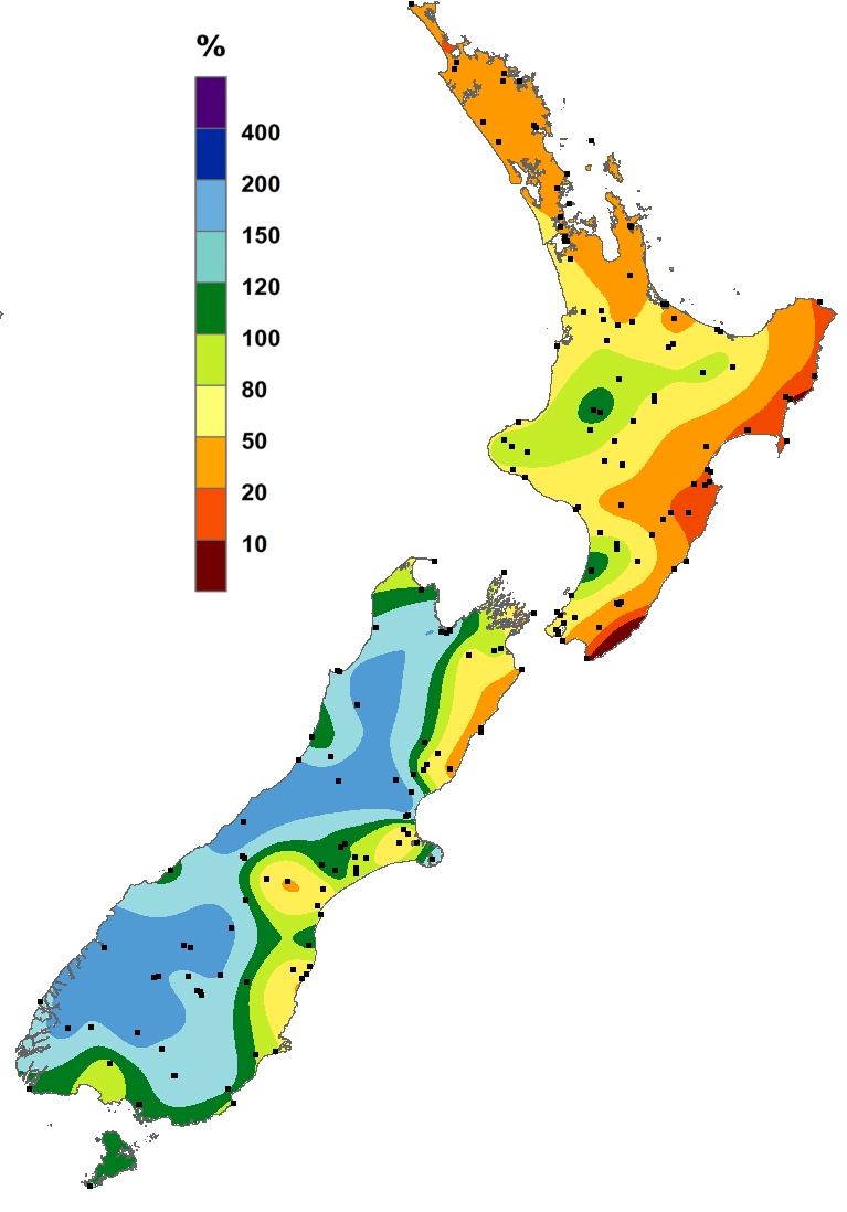 Percentage of normal rainfall for May 2019