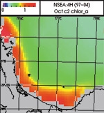 Mean chlorophyll concentrations in the Bay of Plenty for October 1997-2004.