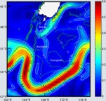 Mean current speed (metres per second) in the Great South Basin, from the NIWA regional ocean model.