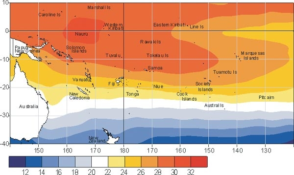 Mean sea surface temperatures (�C) for August 2003