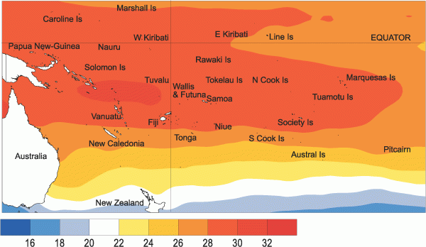 Mean sea surface temperatures (�C) for March 2005