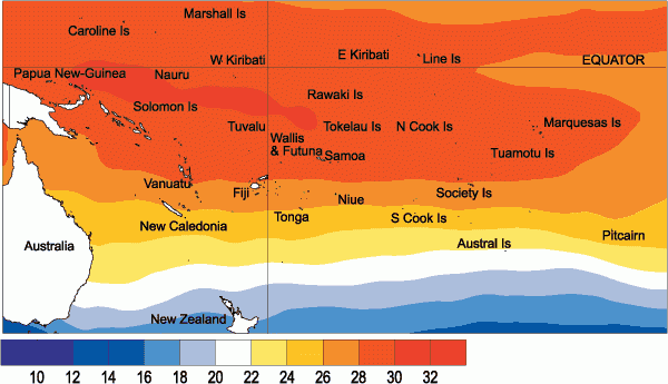 Mean sea surface temperatures (�C) for May 2005