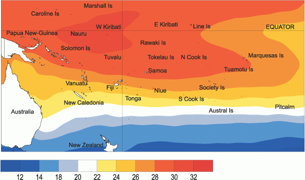 Mean sea surface temperatures (�C) for October 2004