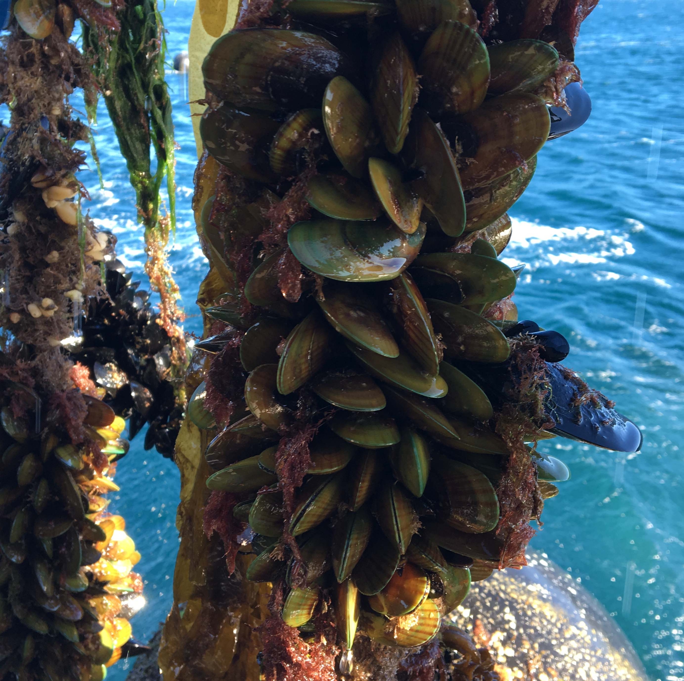 Dropper with a developing crop of mussels.