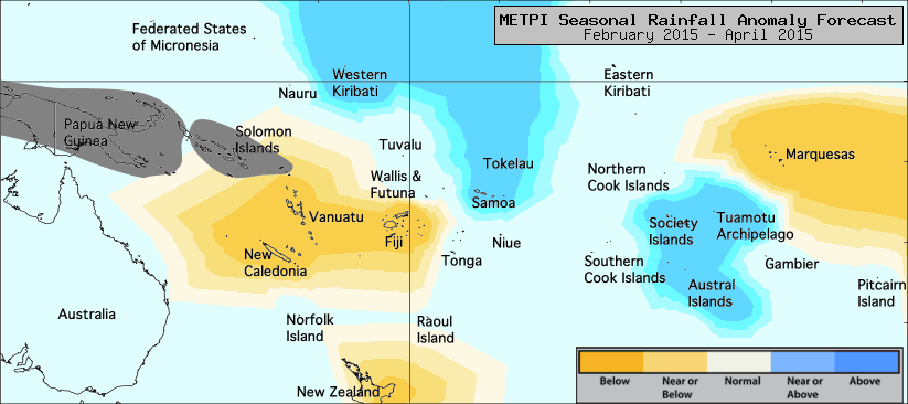Rainfall anomaly outlook map for February - April 2015.