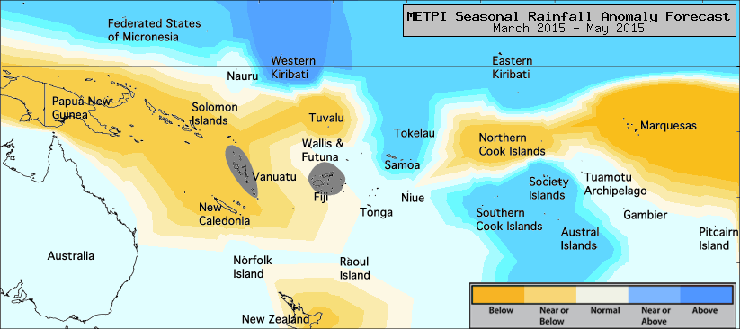 Rainfall anomaly outlook map for March-May 2015.