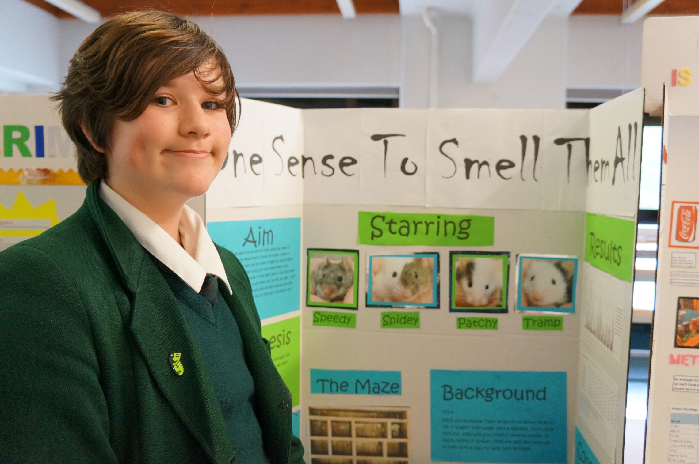 Mia Kilmister with her project 'One sense to kill them all'. Testing to see if mice rely on their sense of smell or sight.