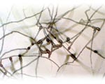 The microscopic conchocelis phase of a Porphyra species.