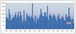 Milford Sound February to April rainfall for 1930 to 2003.