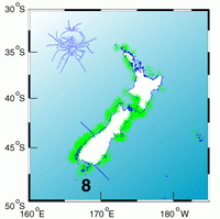 Modelled settlement patterns of rock lobster larvae hatched in Quota Management Area CRA8