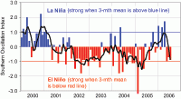 Monthly values of the Southern Oscillation Index (SOI), a measure of the changes in atmospheric pressures across the Pacific, and the three-month mean (black line). The SOI fell slightly to -0.9 in July, from -0.7 in June. The three month May to July aver