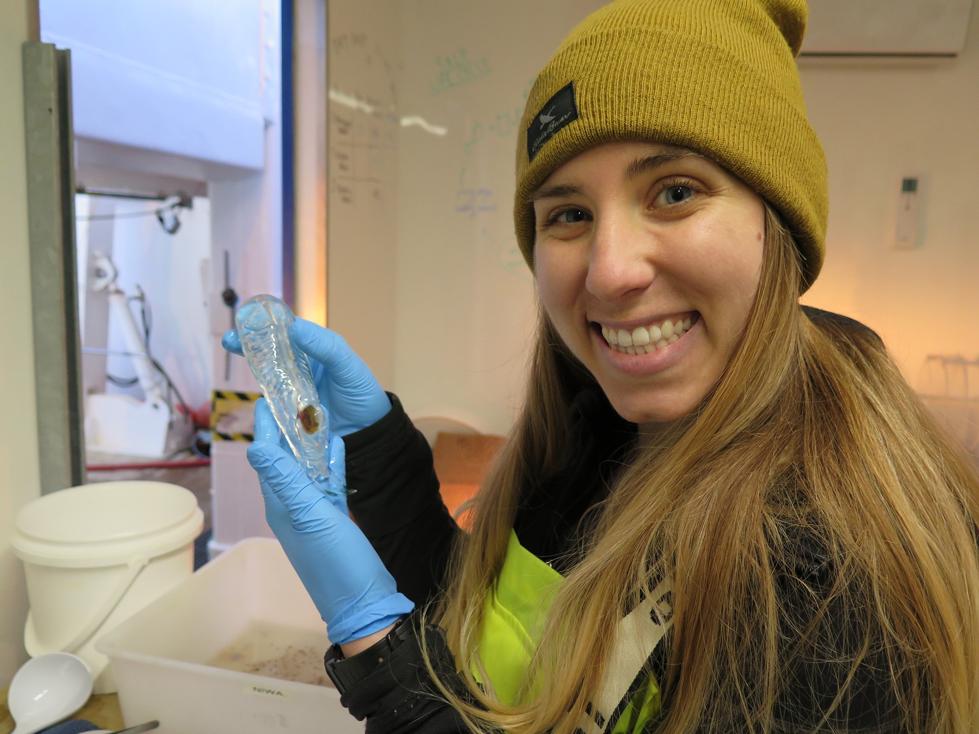 Morgan Meyers (University of Otago) holds up a solitary T. vagina zooid.
