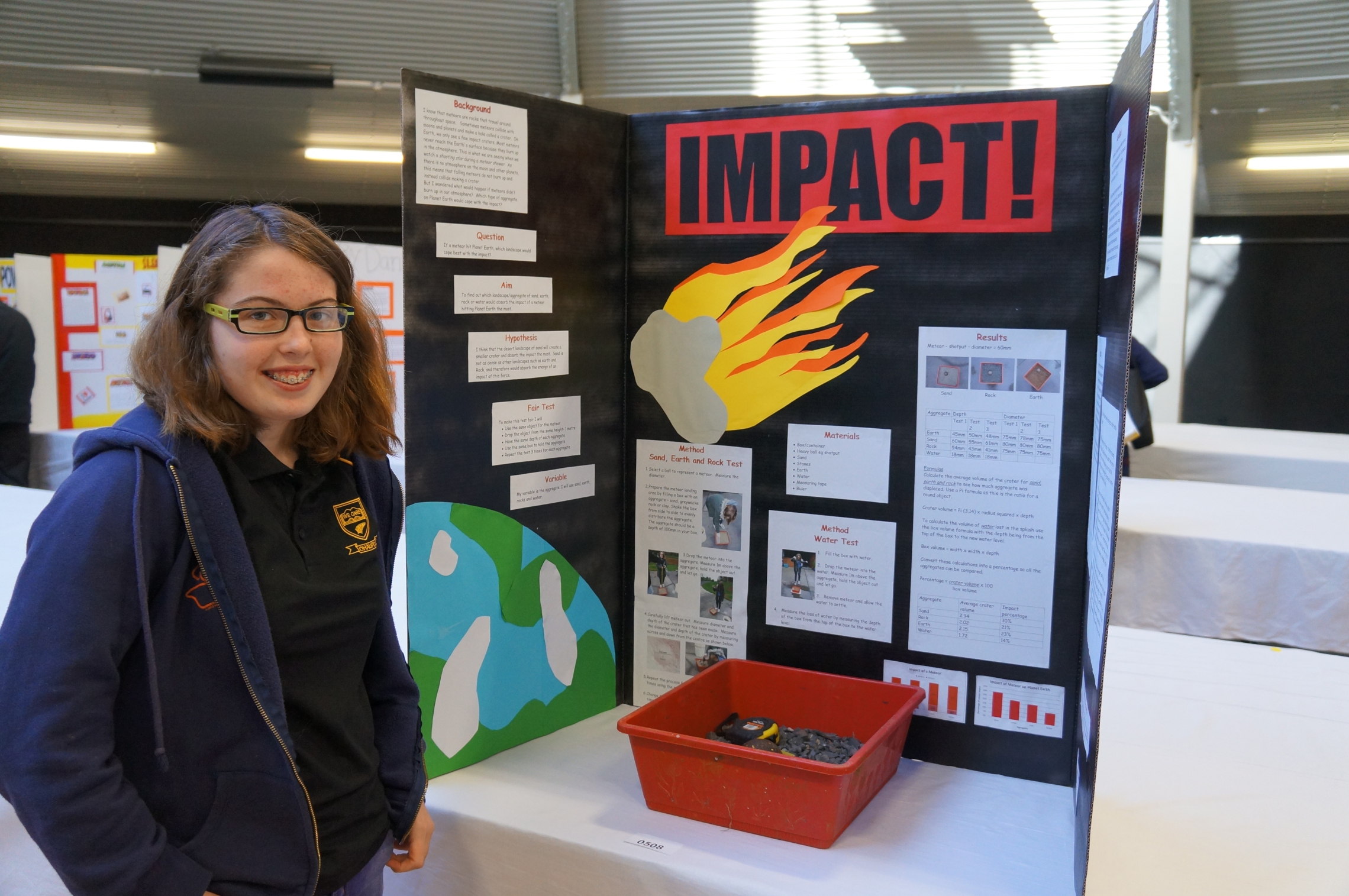Natalia Clarke with her project 'Impact' - measuring which landscape would cope best with the impact of a meteor.