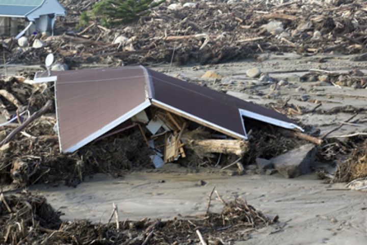 Flooding is a major risk in New Zealand. The remains of a house at Matata which collapsed during floods there. (Alan Blacklock)