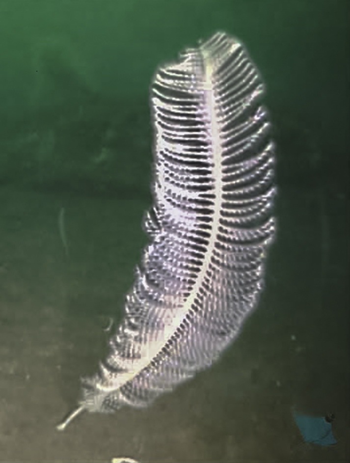 This sea pen specimen (Acanthoptilum sp.) was one of several discovered by NIWA and DOC scientists exploring the deep waters of Fiordland.
