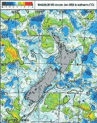 The New Zealand average sea surface temperature anomaly dropped to about +0.5 °C in June, with a 3-month mean anomaly for April to June of about +0.7 °C.