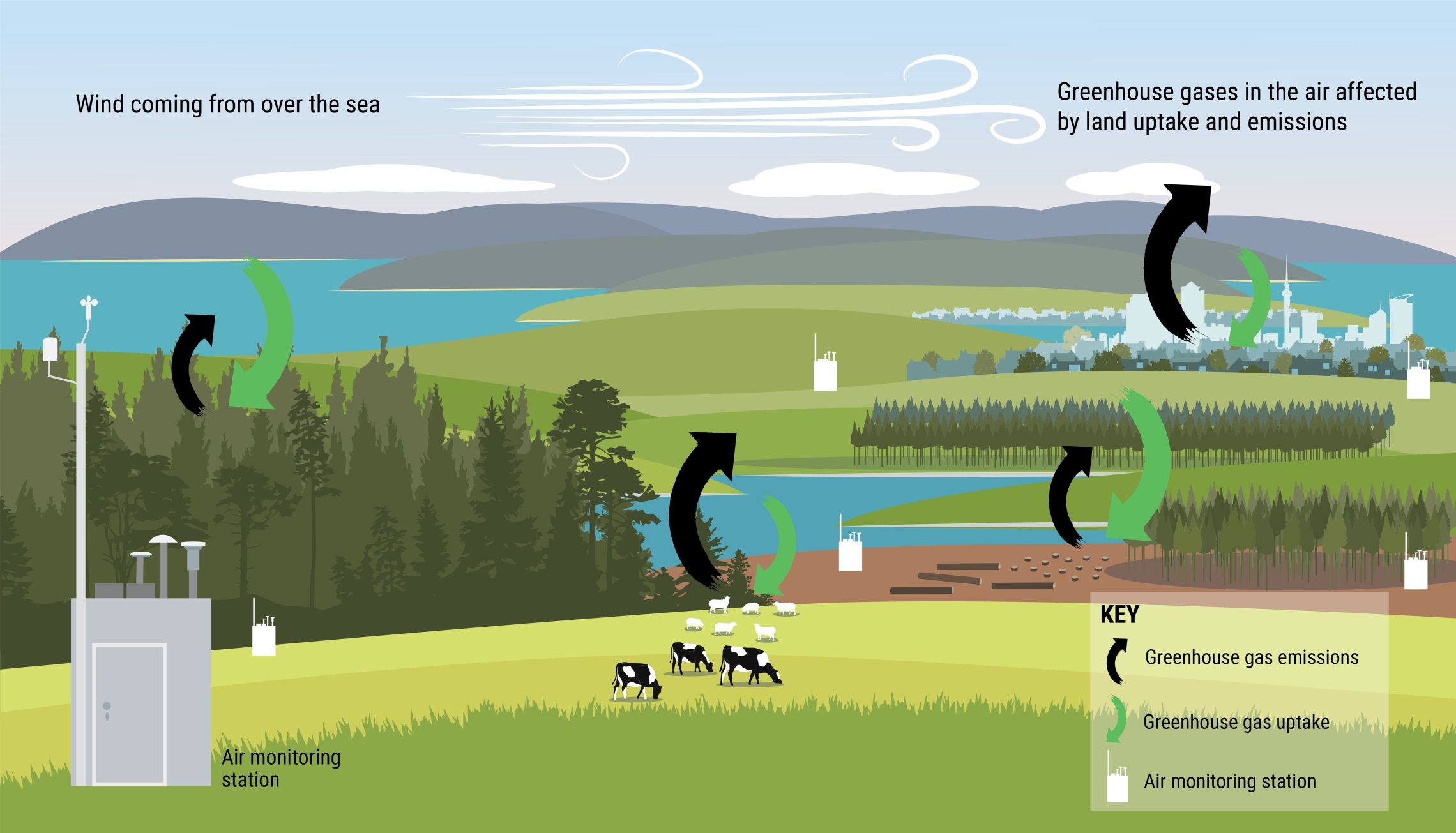 CarbonWatchNZ measures greenhouse gas emissions and uptake across New Zealand's cities, forests and farmlands.