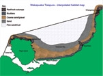 NIWA produced this interactive CD-ROM to accompany the habitat map. The taiapure committee can click on points of interest on the map and view side scans of the seabed, and video footage of habitat and species, at that location.