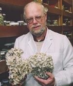 NIWA scientist Dennis Gordon with two of the alien bryozoans.