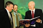 NIWA scientists Neil Andrew and Malcolm Francis discuss The Living Reef with the Minister of Fisheries