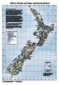 NIWA has 1374 monitoring stations recording rainfall, climate, soil moisture, waterlevel/flow, water quality, and sea level. This poster shows where each station is located and what type it is.