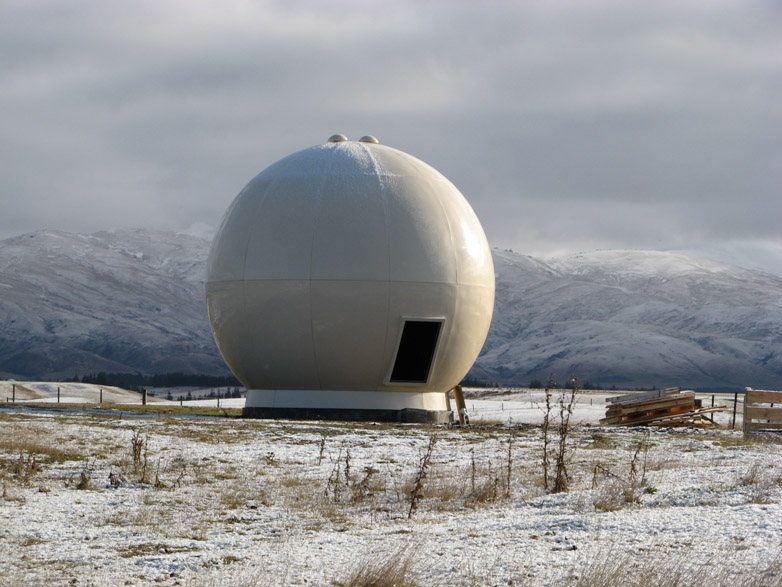 NIWA's Lauder receiving station. The dome protects the dish inside from the elements.