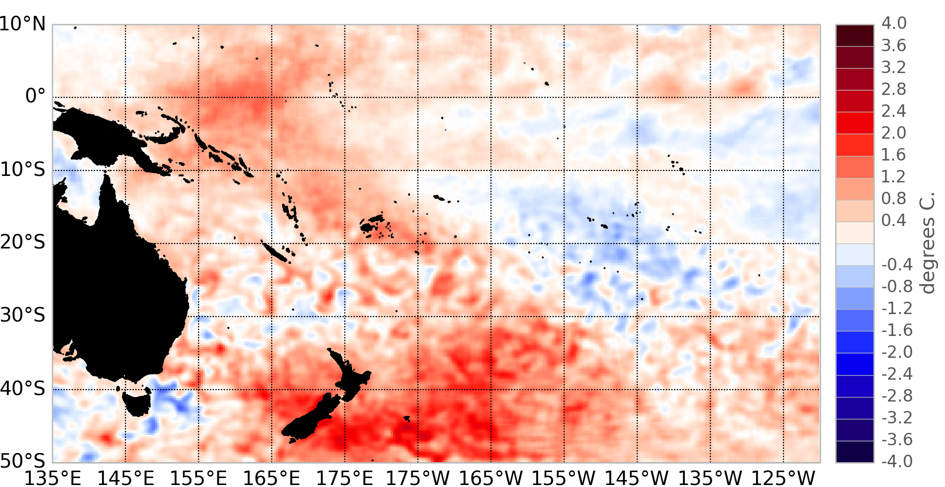 Surface temperature anomalies (ºC) for November 2013, data is from the NOAA OISST Version 2 dataset, available at the NOAA’s Climate Data Center (ftp://ftp.cdc.noaa.gov/Datasets/noaa.oisst.v2.highres/).