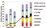 The number of species or species groups in intermittent streams compared to permanent streams from the same area.
