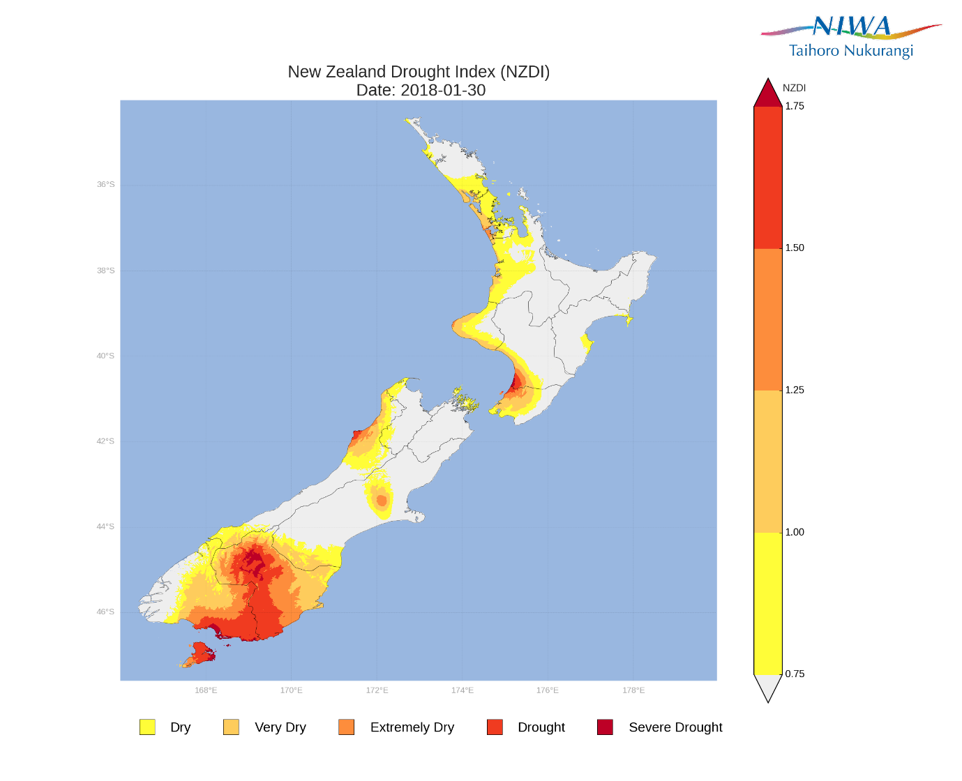 New Zealand Drought Index (NZDI) Date: 2018-01-30