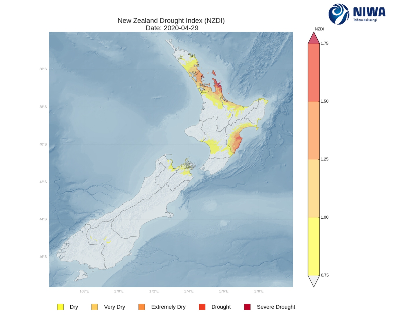 NZ Drought Index map for 29 April 2020