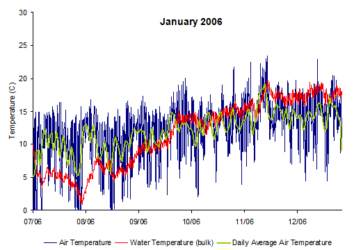 Observed air temperature against water temperature simulations for Wainoni Wetland 2. Credit: NIWA