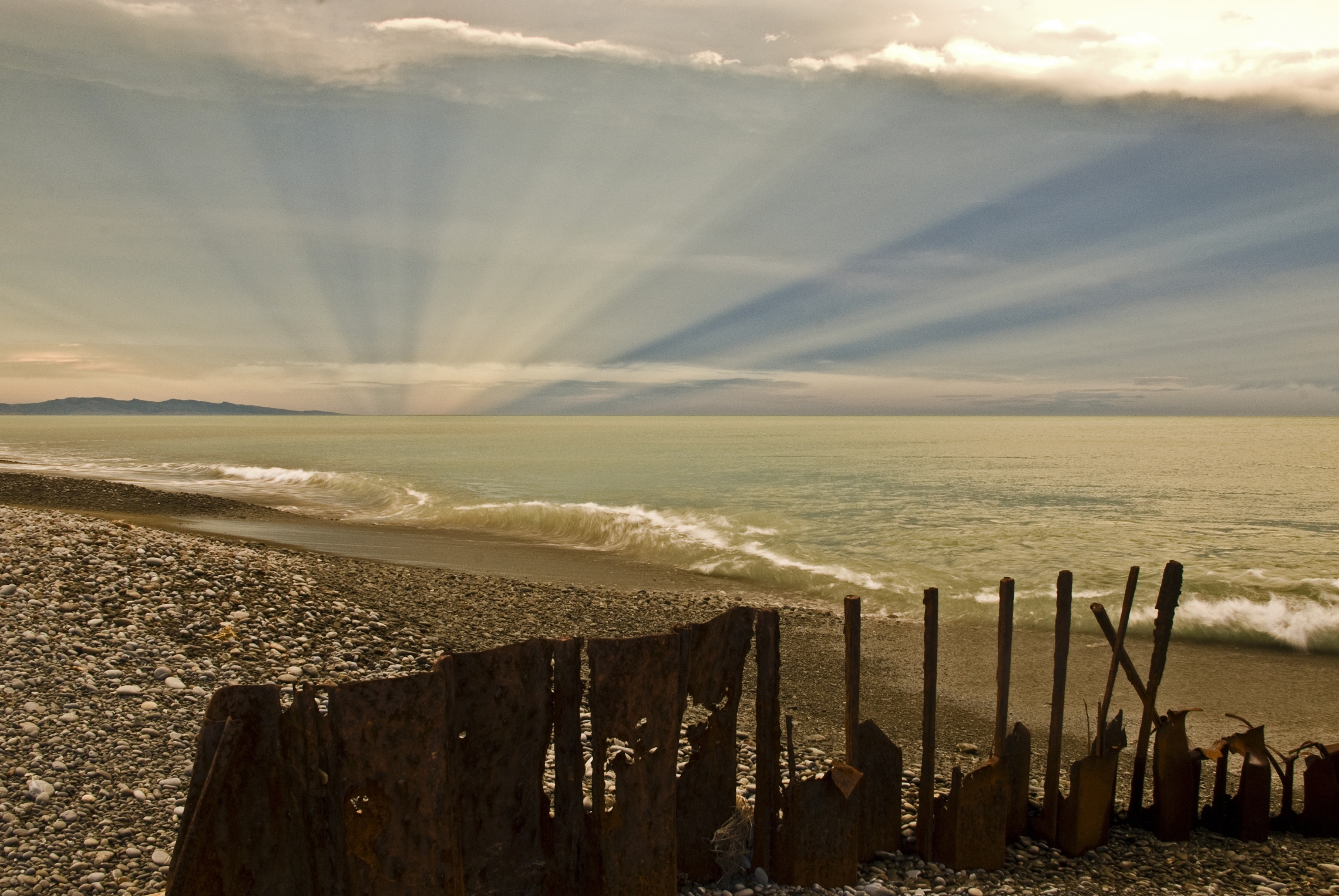 Anticrepuscular rays are sun rays that seem to converge at a point at the opposite side of the sun. This photo was taken near Southbridge, Canterbury in March of 2009.