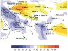 Outgoing Long-wave Radiation (OLR) anomalies for March 2009.
