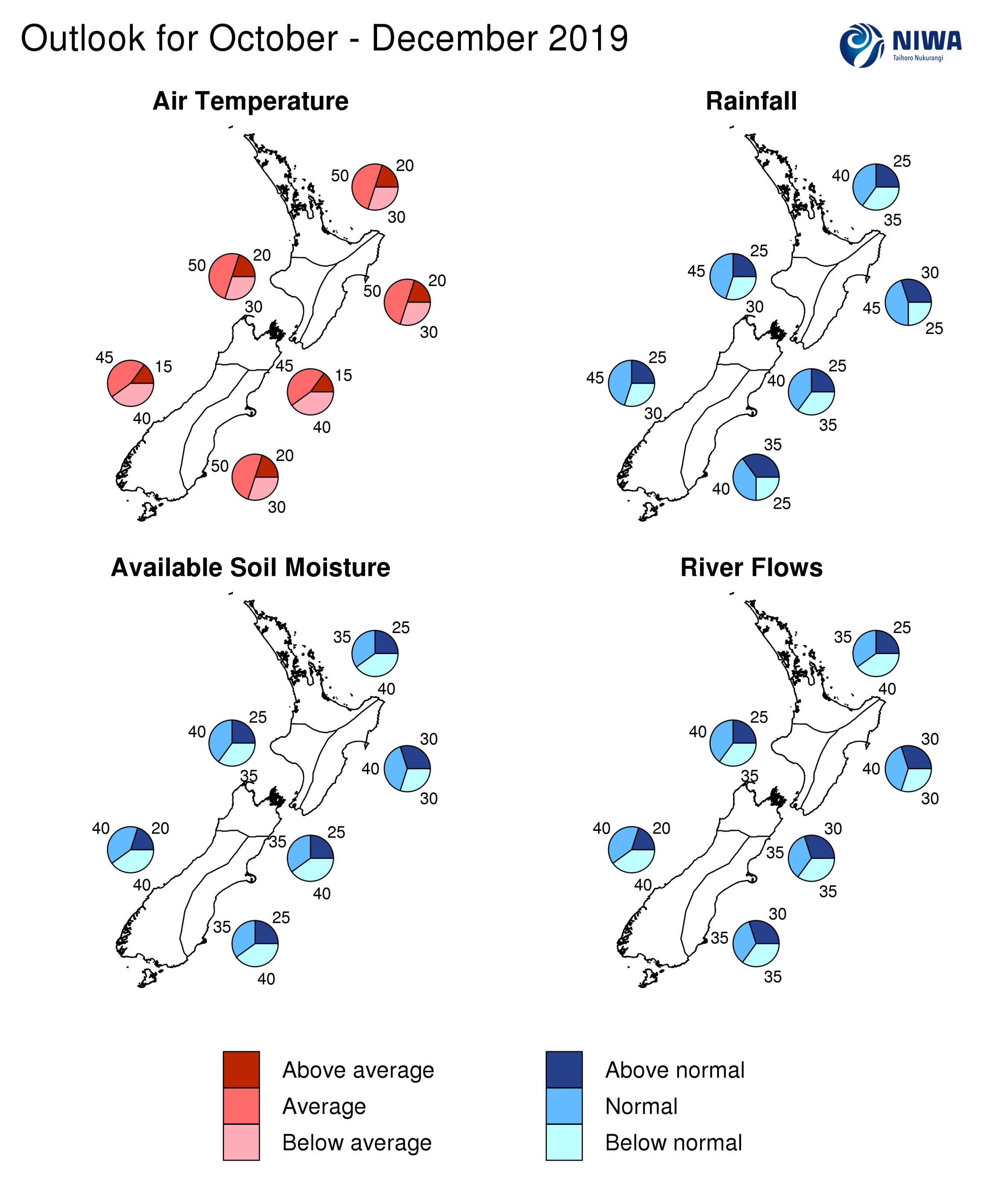 Graphical representation of the regional probabilities, Seasonal Climate Outlook, October-December 2019.